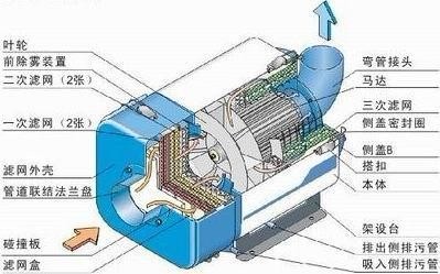 油(煙)霧收集效率高,油霧過(guò)濾器對(duì)于各種水溶性、油性霧狀物的收集效率高達(dá)99% 。